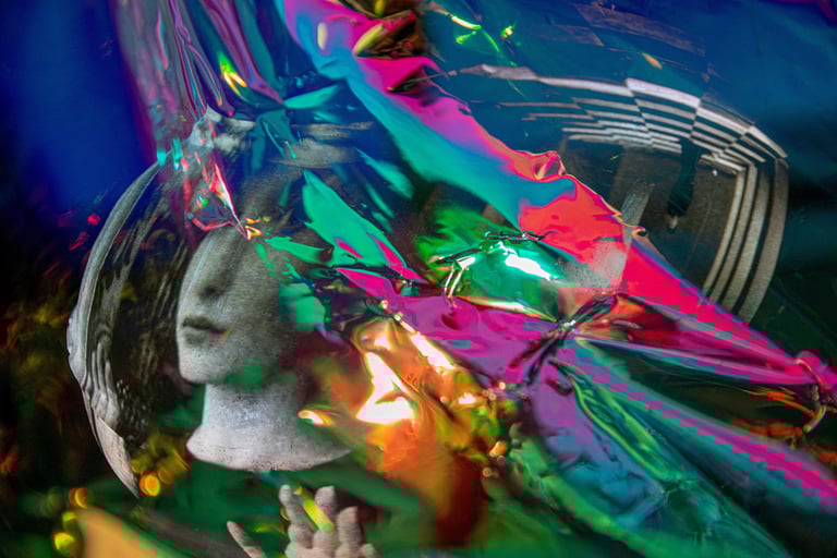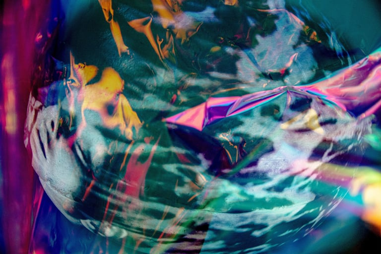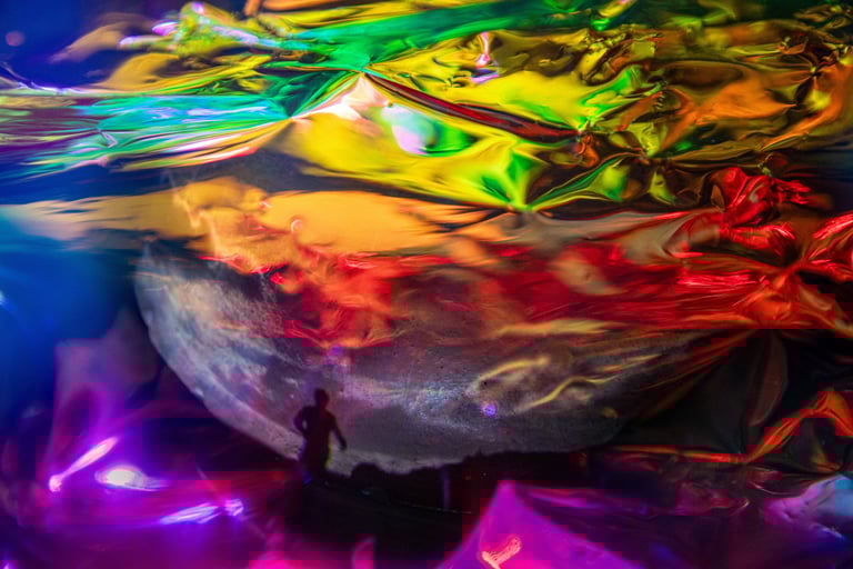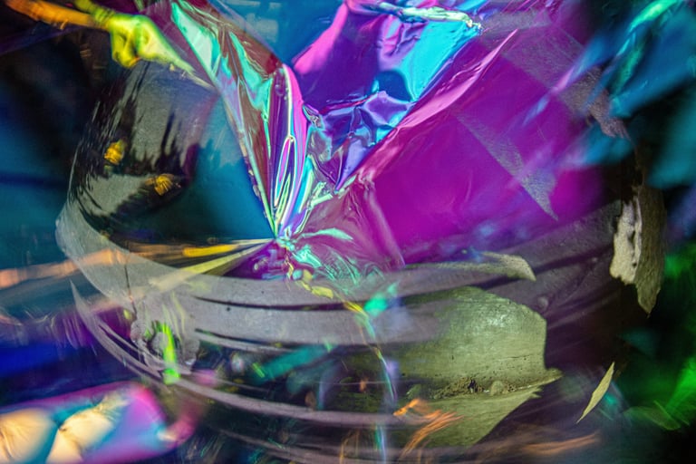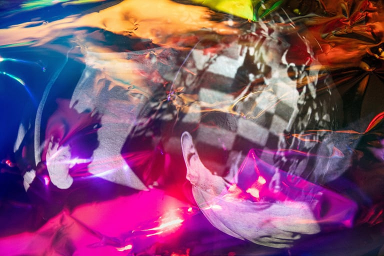 'Broken Cinema Dreams' explores the tension between cinematic memory and photography. Abstract compositions created with light and color merge with distorted frames from early films. The result is a fragmented space where visual memories dissolve and reassemble.