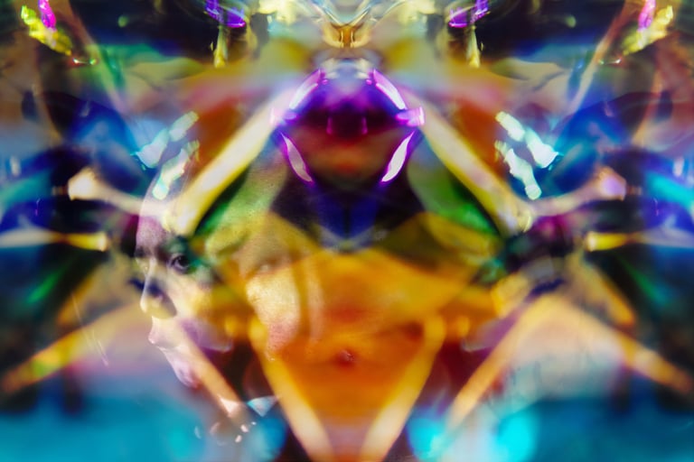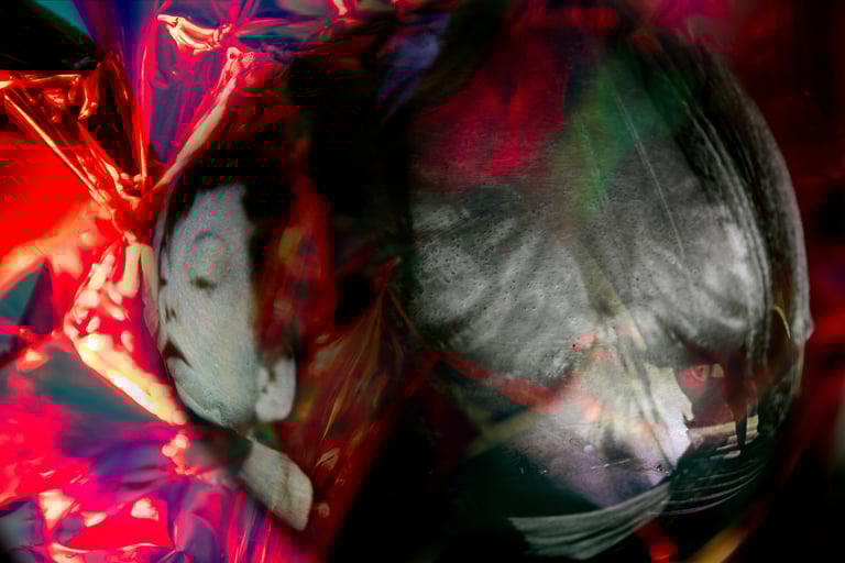 This series explores the tension between cinematic memory and photography as a medium. It began with an exploration of abstraction in photography, experimenting with materials such as cellophane under colored light to create dynamic, vibrant compositions.